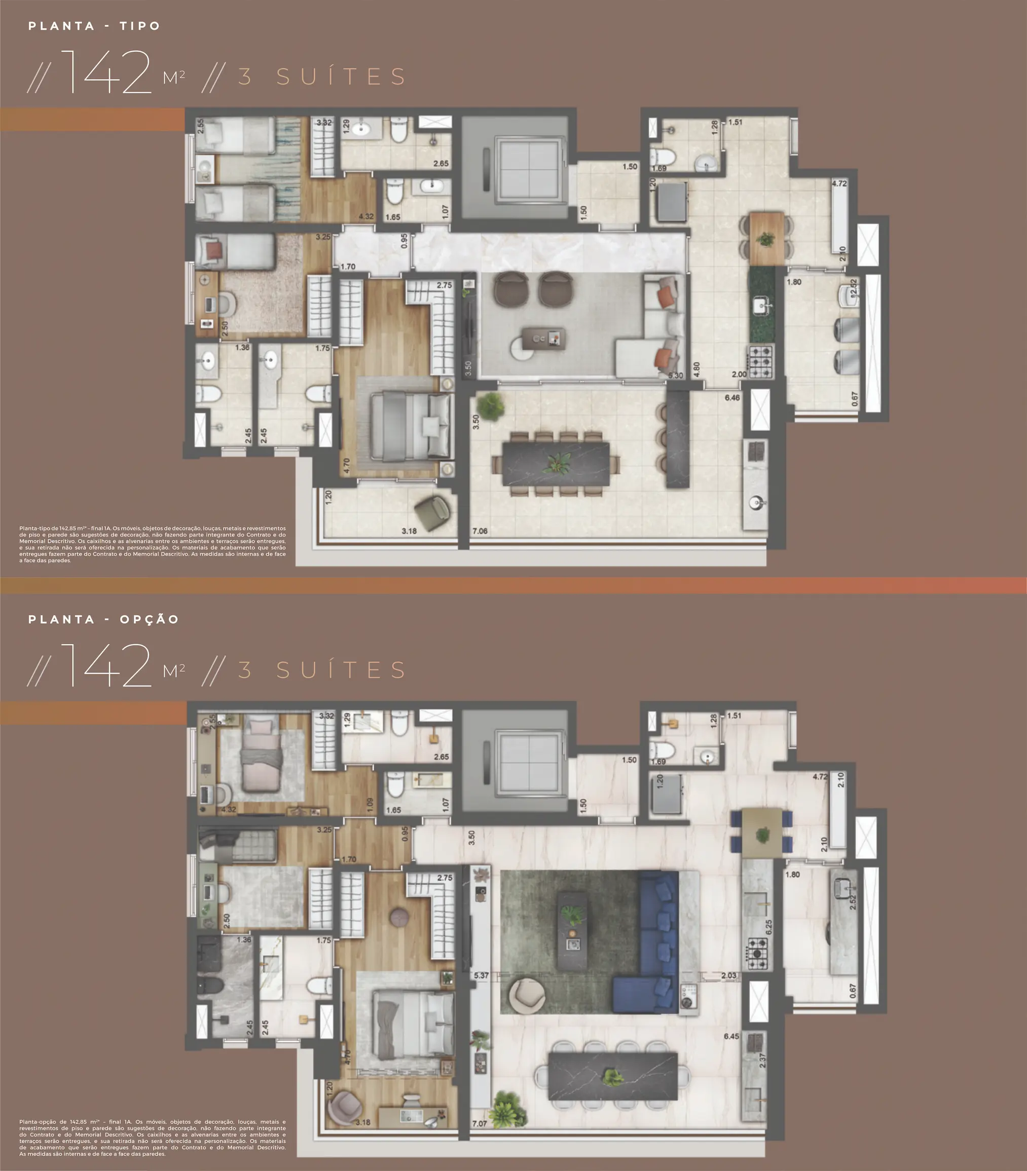 Clique aqui para ver o Decorado de 142m² (Planta com 3 suítes)