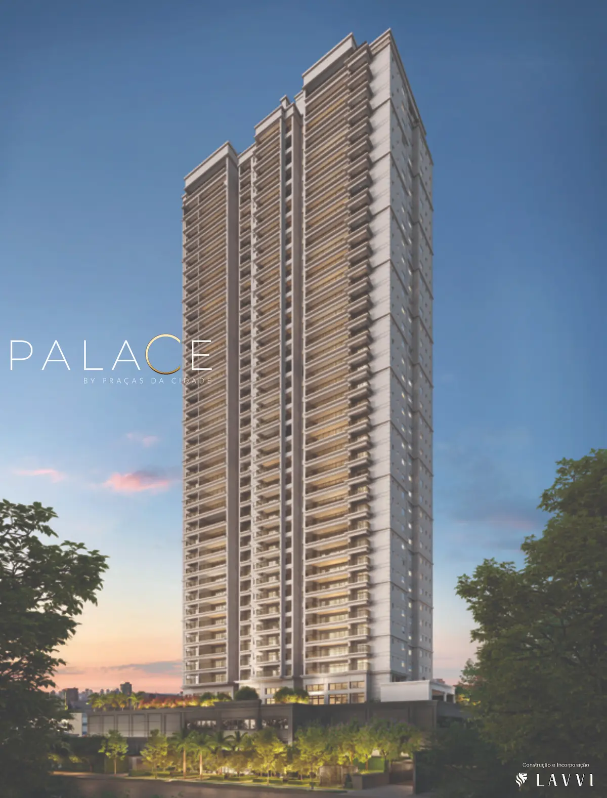 O Palace by Praças da Cidade redefine o conceito de morar bem na capital paulista. Com sua torre única de 36 andares erguida em um generoso terreno de 4500 m², o empreendimento impressiona desde o primeiro olhar. A fachada sofisticada e o lobby de entrada criam uma experiência única, que se estende até o conforto do seu novo lar.