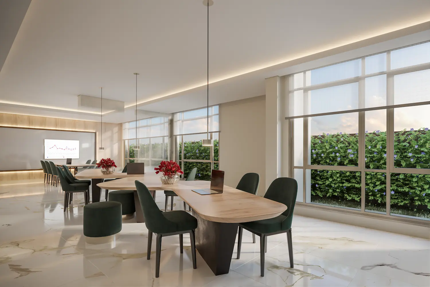 - Alto desempenho acústico e aproveitamento de luz natural