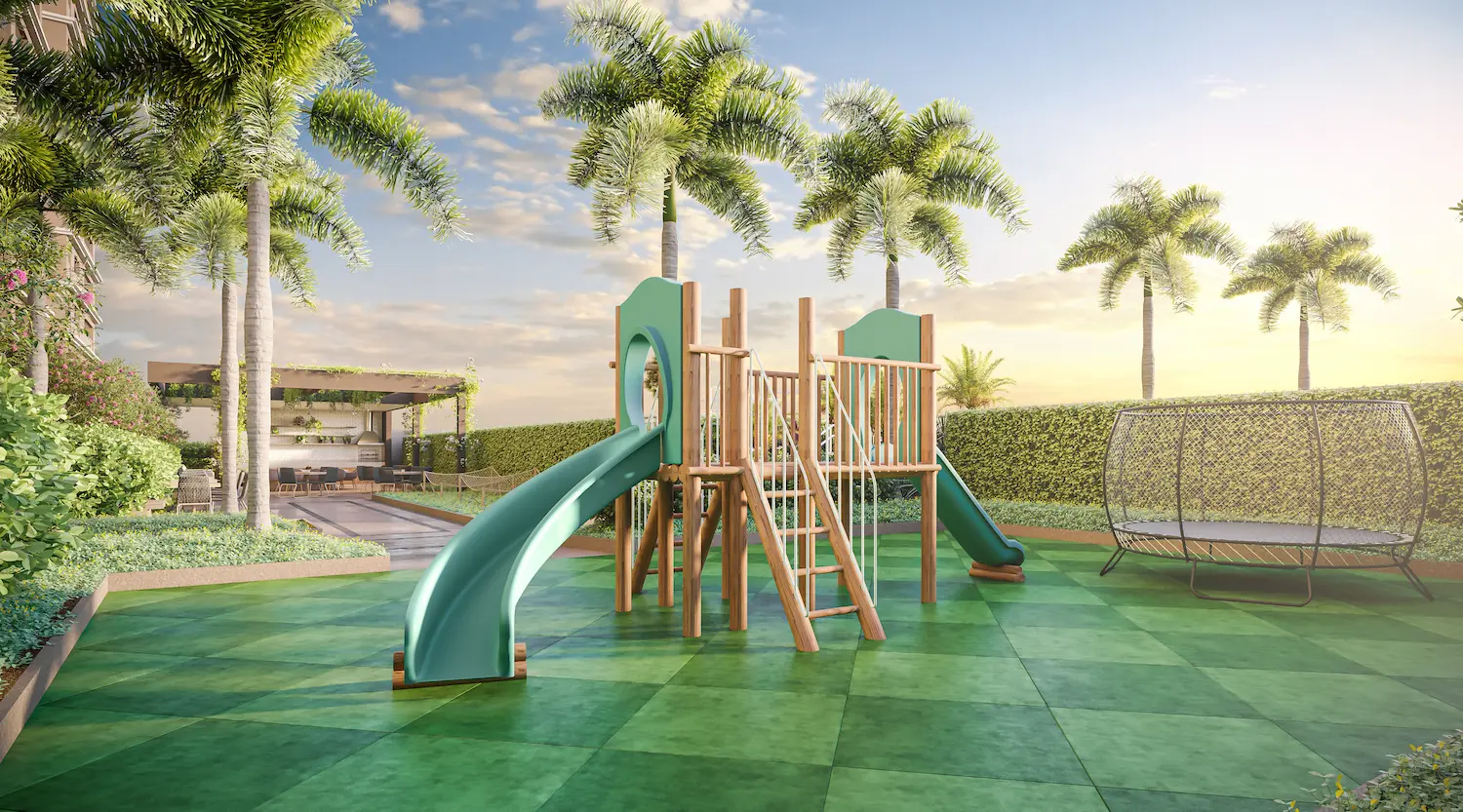 - Áreas infantis e teen com brinquedoteca, playground e salão de jogos