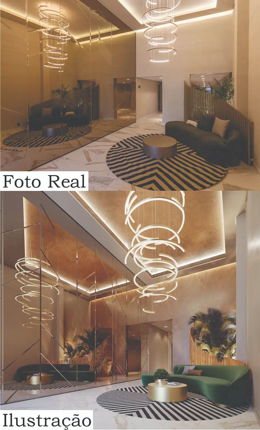 Ao chegar em casa, você é recebido por um Lobby com pé-direito duplo, que transmite sofisticação desde o primeiro contato.