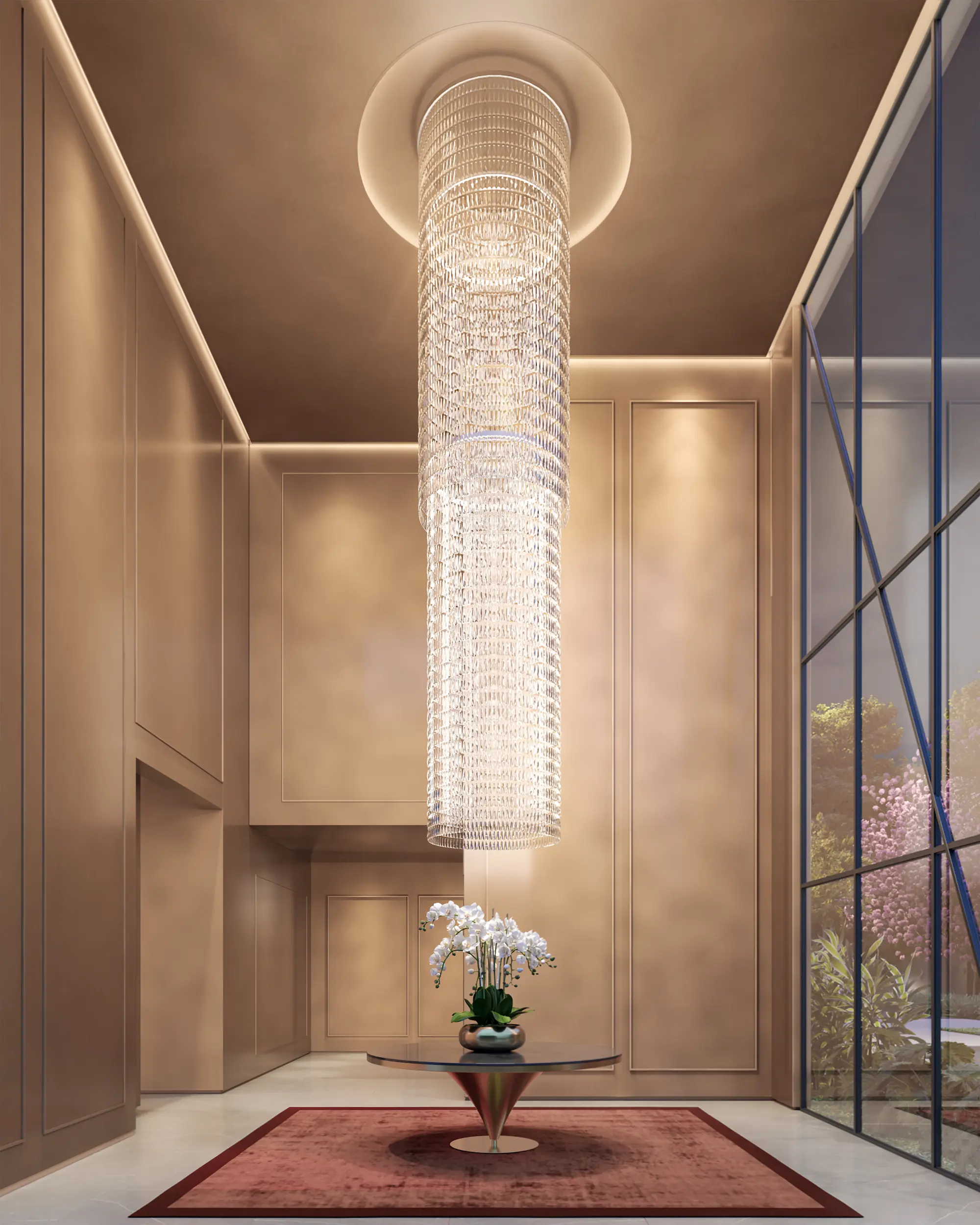 A arquitetura do empreendimento valoriza elegância e funcionalidade. Um Porte-Cochère imponente garante conforto e segurança para embarque e desembarque, enquanto a fachada sofisticada reforça a identidade moderna do projeto. Ao entrar, os moradores são recebidos por um lobby luxuoso com pé-direito triplo, que conecta sofisticação e amplitude desde o primeiro contato.